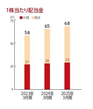 | 1株当たり年間配当金(円) | 54 | 56 | 58 | 65 | 68 |